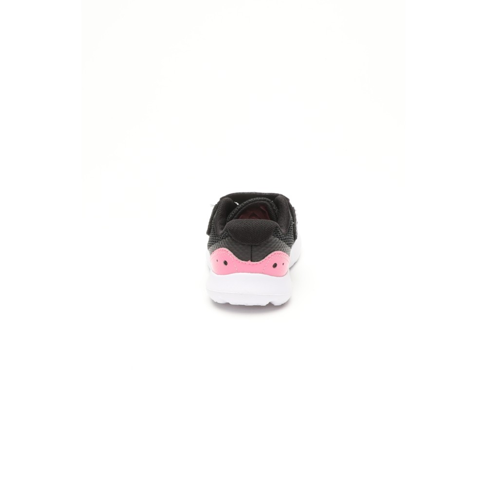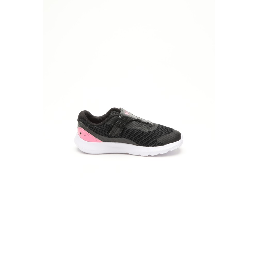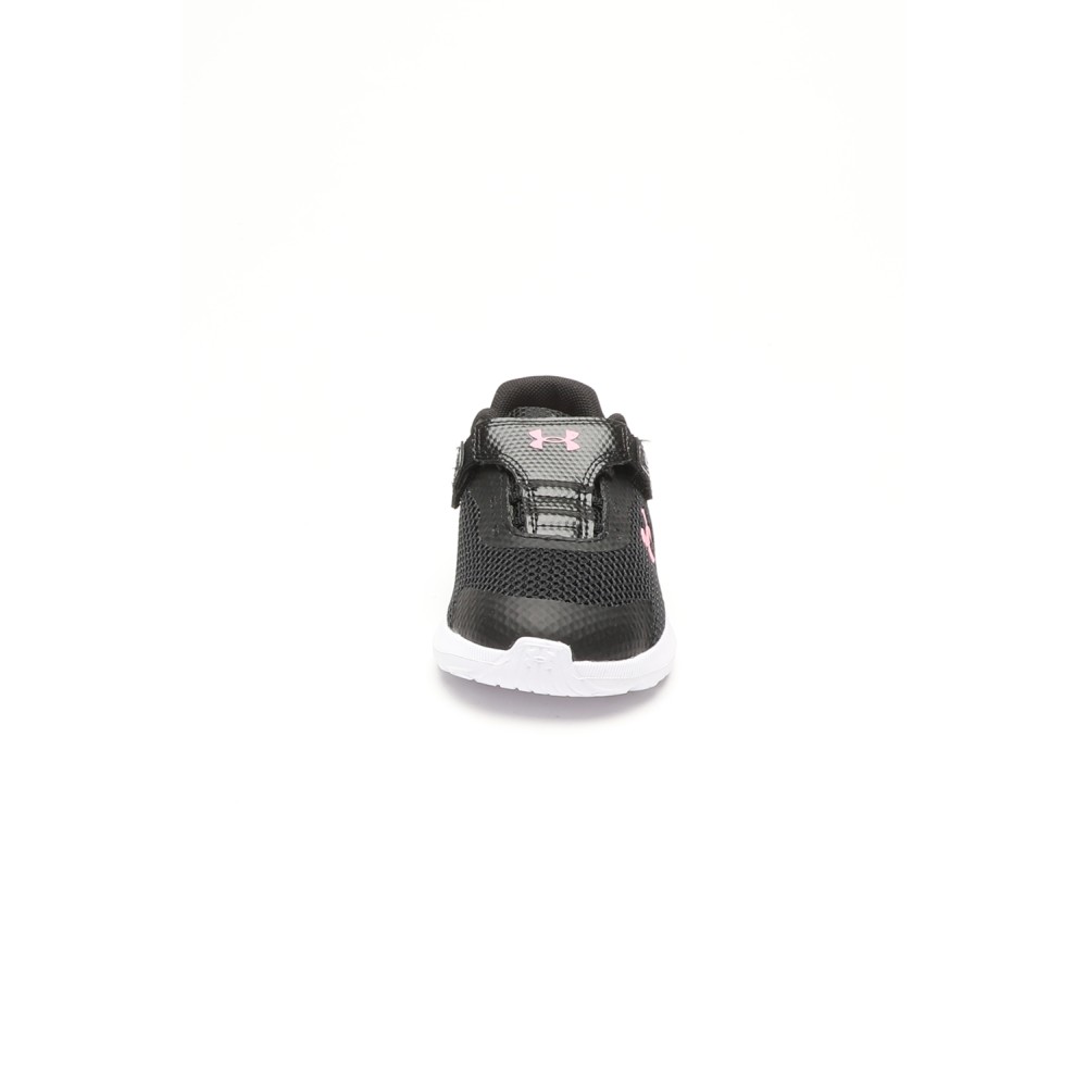 Βρεφικά αθλητικά παπούτσια UNDER ARMOUR σε μαύρο χρώμα, με ροζ λεπτομέρειες. Από ελαφρύ mesh, με ελαφριά εξωτερική σόλα EVA. Κλείνουν με velcro.